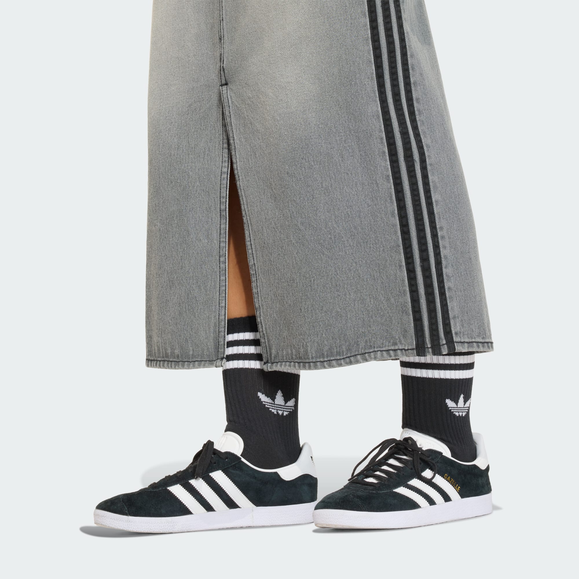 Iconic style meets modern flair in the 3-Stripes Denim Pencil Skirt. With a fresh streetwear vibe that stays true to its Originals heritage, this skirt is set to become a staple in your wardrobe. Crafted in washed denim for a classic jeans aesthetic, this mid-rise skirt has a vintage, lived-in look. Bold 3-Stripes down each side add distinctive adidas flair, making a statement on the street that’s instantly recognisable. A subtle A-line cut, with front slit for ease of movement, creates a relaxed yet streamlined silhouette. Easy to style with your favourite tops and accessories, this versatile skirt never goes out of fashion. Whether it’s a casual day with friends or a night out on the town, make this skirt your go-to for an effortless, on-trend look.