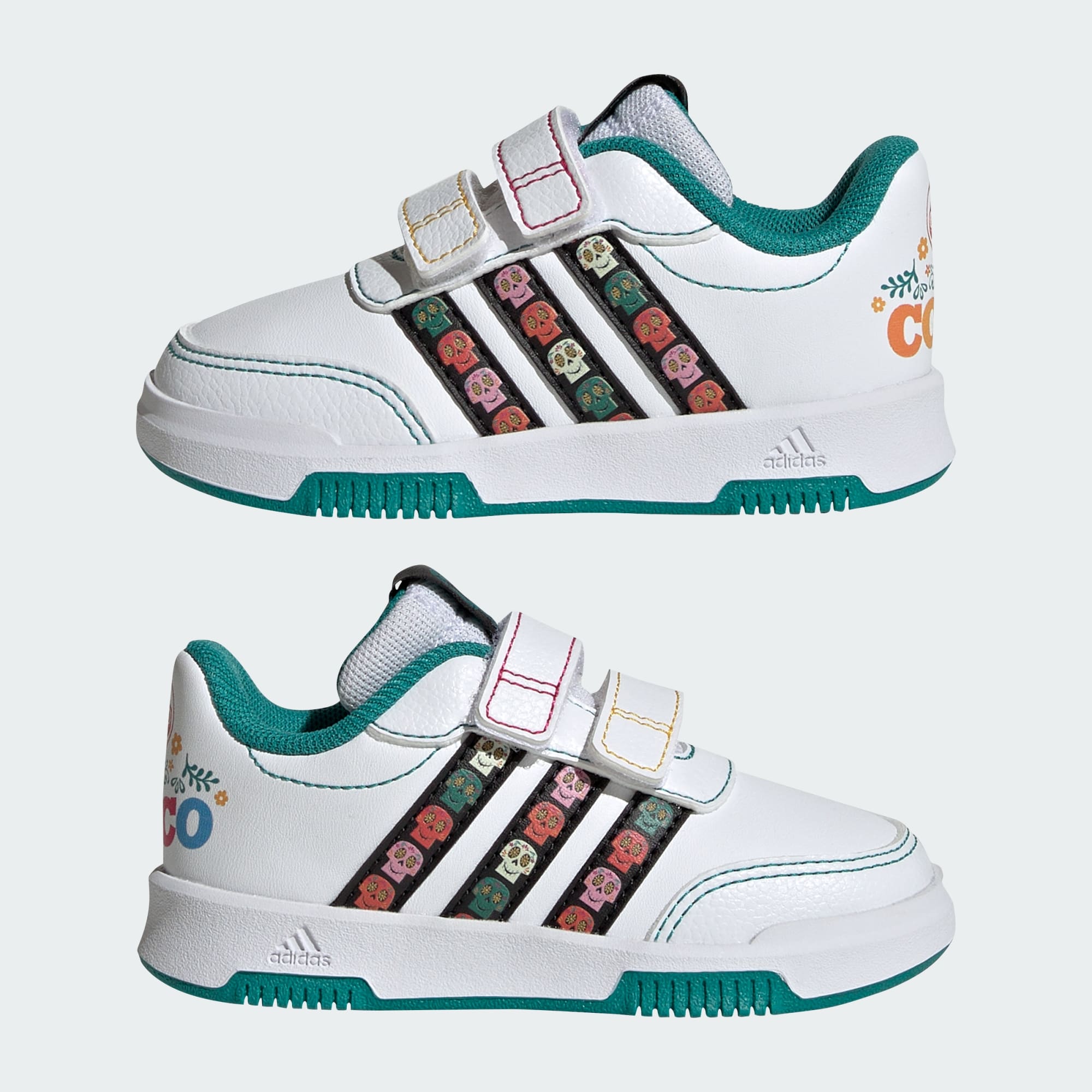 With graphics inspired by Disney Pixar's Coco, little ones will feel like they're walking into a magical land every time they slip on these infants' adidas shoes. Hook-and-loop straps make them easy to get on and off — and fast. A rubber outsole helps your kiddo stay steady as they play.