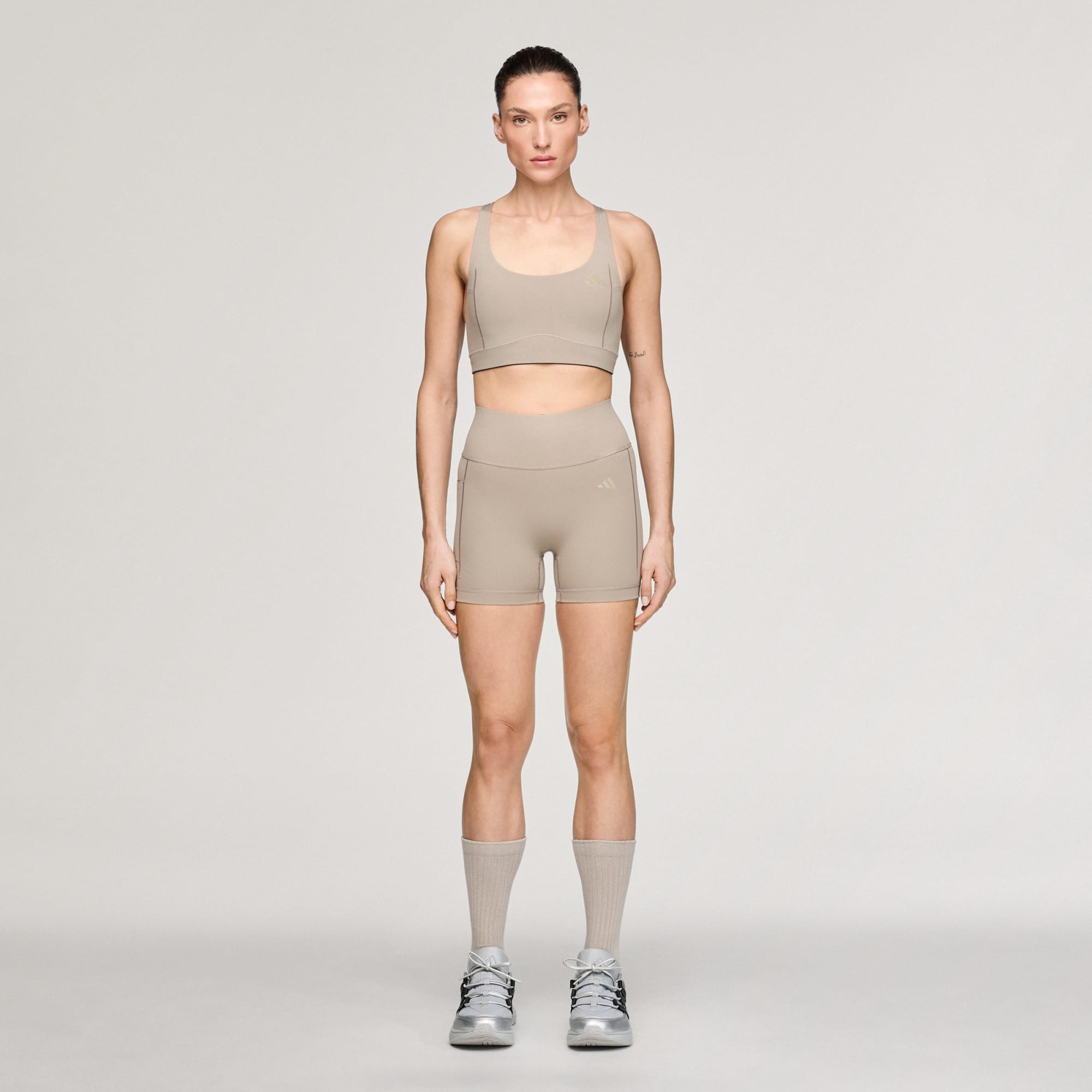 The adidas x entire studios Optime Short Training Leggings blend entire studios' signature aesthetic with adidas' performance-driven technology for a stylish look. COOL. DRY. READY. Climacool wicks and disperses sweat for a cool, dry and distraction-free performance. Stay visible and make a statement with the reflective logos. The high-rise design and short leg style help you feel secure but cool during intense workouts, whilst the side pocket adds functionality and storage for your essentials. Whether you're working out at the gym or pairing them with a relaxed jumper for a casual day out, these leggings are your go-to choice for comfort and performance.