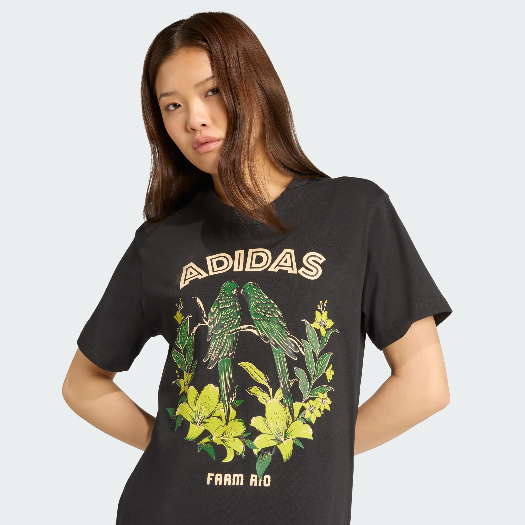 Spread your wings in this adidas x FARM graphic tee inspired by the fusion of Latin American culture and the symbolism of the butterfly. The oversized graphic makes a bold statement on the front. Made from soft single jersey material, this loose-fit tee gives you room to move with confidence. Whether you're headed to the gym or out on the town, you'll feel free to express your true colours.