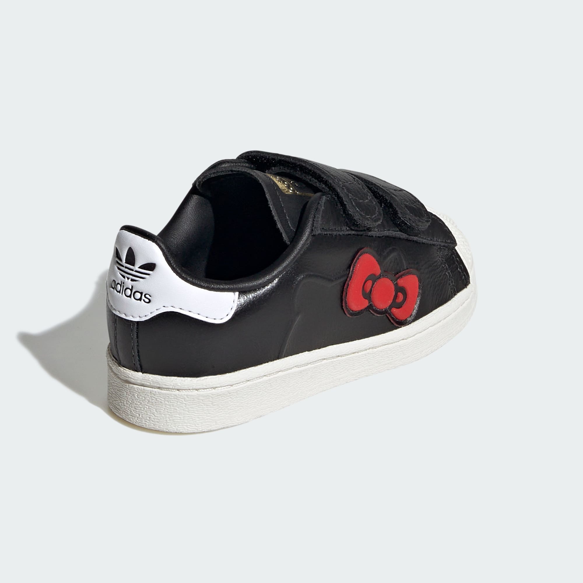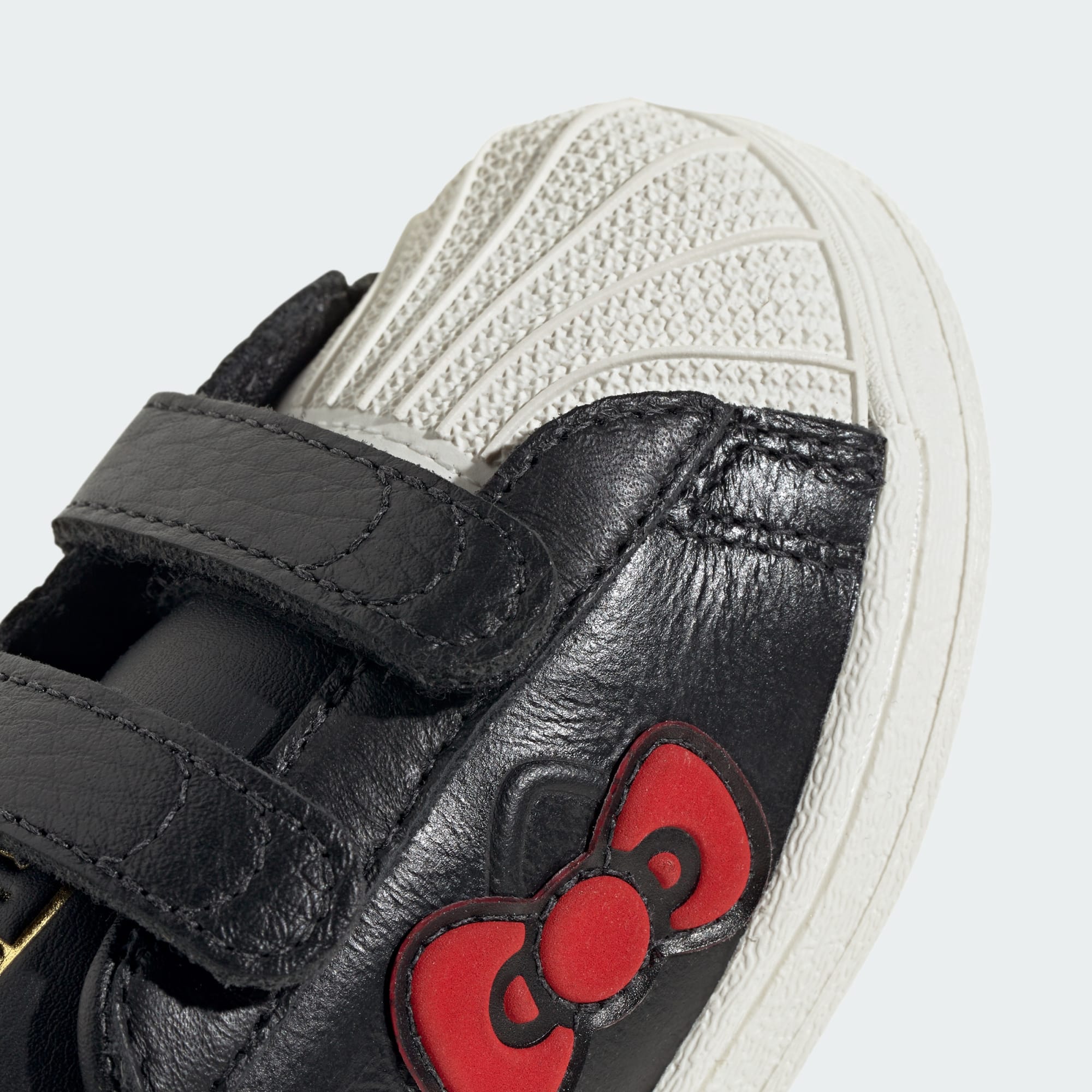 Hello Kitty adidas Superstar shoes for little feet, with easy-to-fasten straps.
