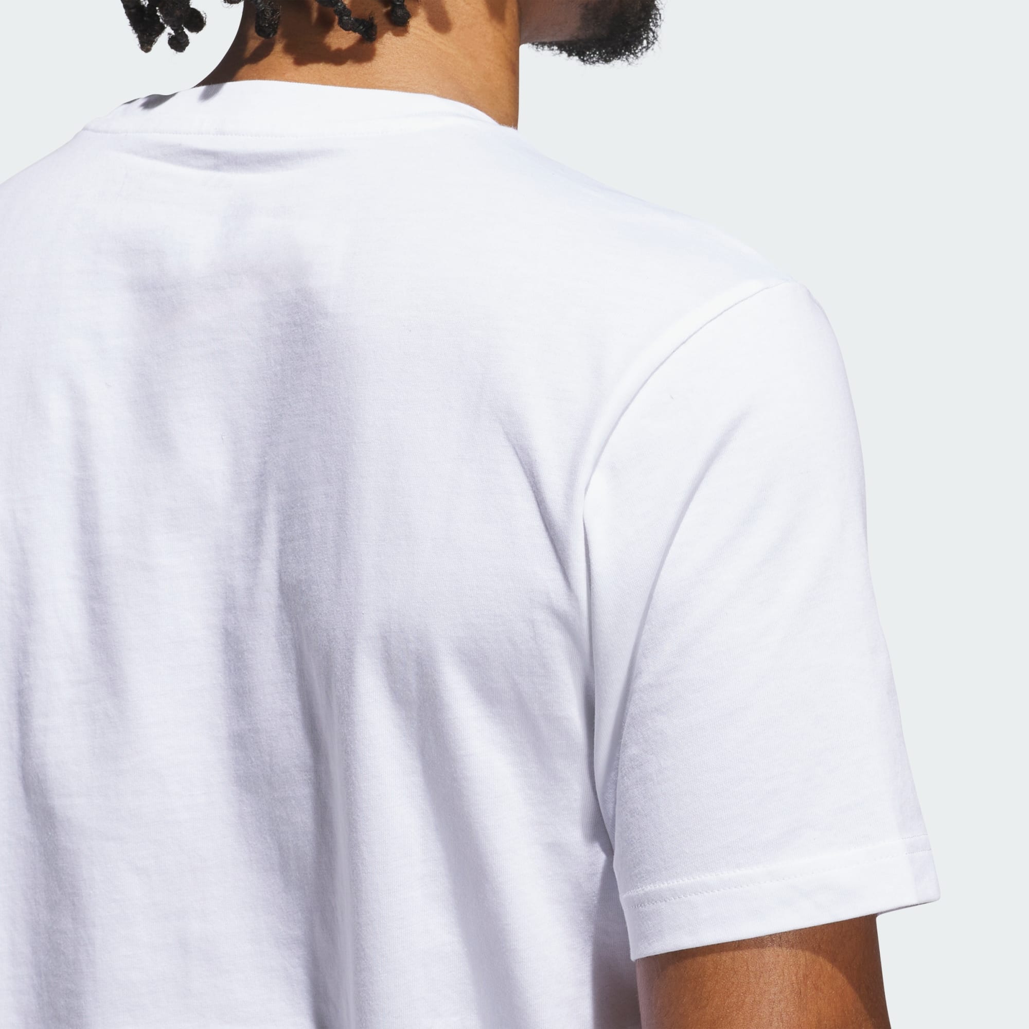 Life's an adventure. Celebrate the journey in this adidas graphic tee. Inspired by classic European camouflage, a bold, multicolour graphic stands out on the chest. Soft single jersey cotton keeps you comfortable no matter where the day takes you.