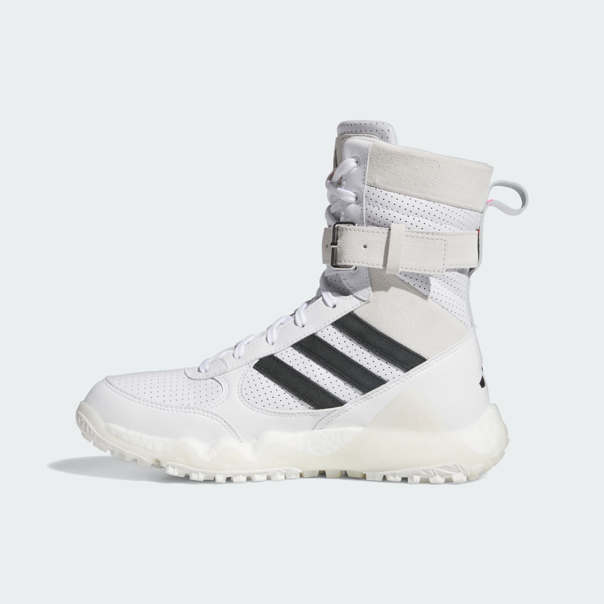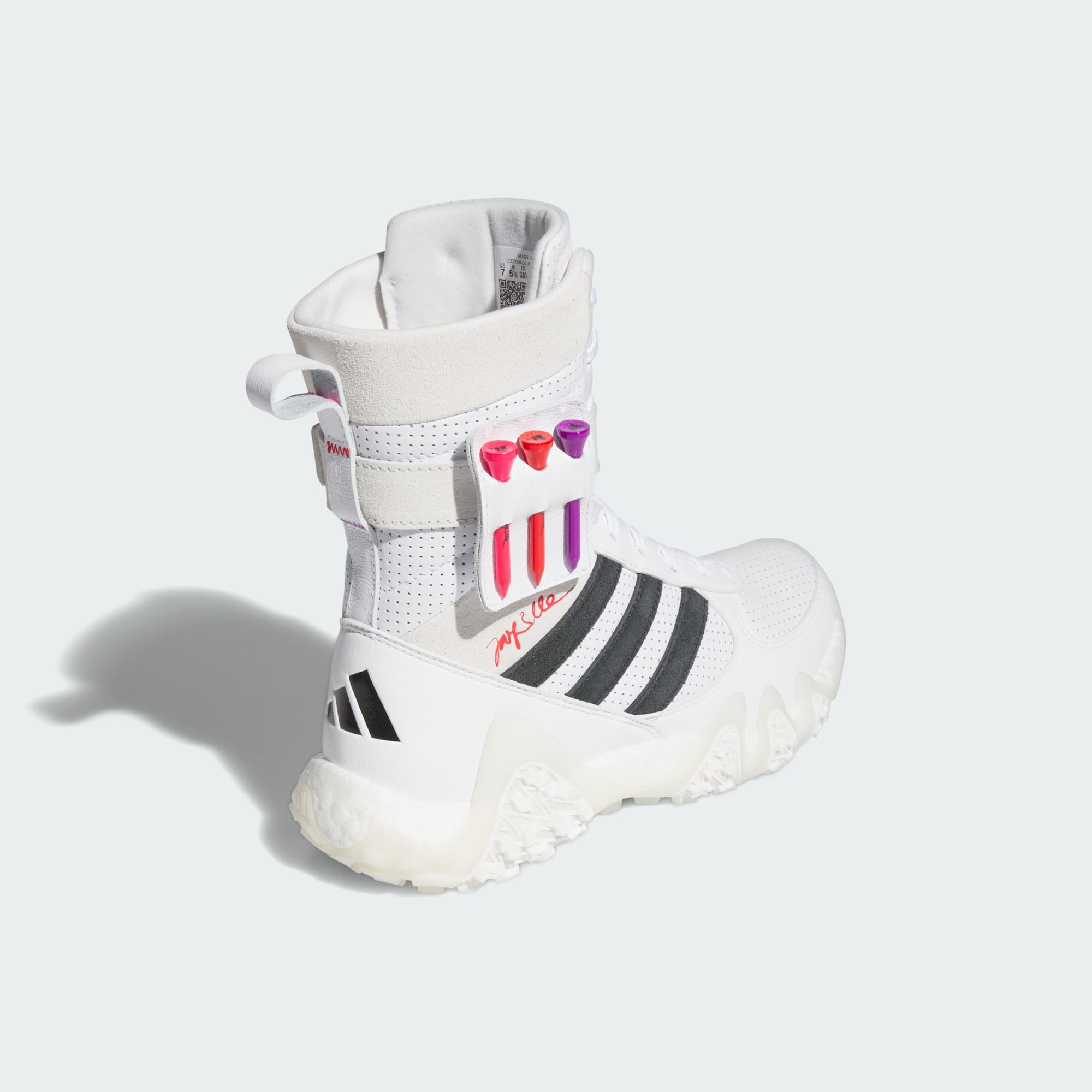 Shake up tradition. Tee off with a bold look that's anything but status quo in these spikeless adidas CodeChaos golf shoes. The high, lace-up boot is inspired by our collaboration with Swedish designer Jay3lle, and features a tee holder at the ankle so you always have an extra close by. With the energized feel of BOOST and a Traxion outsole with Gripmore® rubber for secure footing, these shoes deliver performance with groundbreaking style that adds up to confidence on the course.