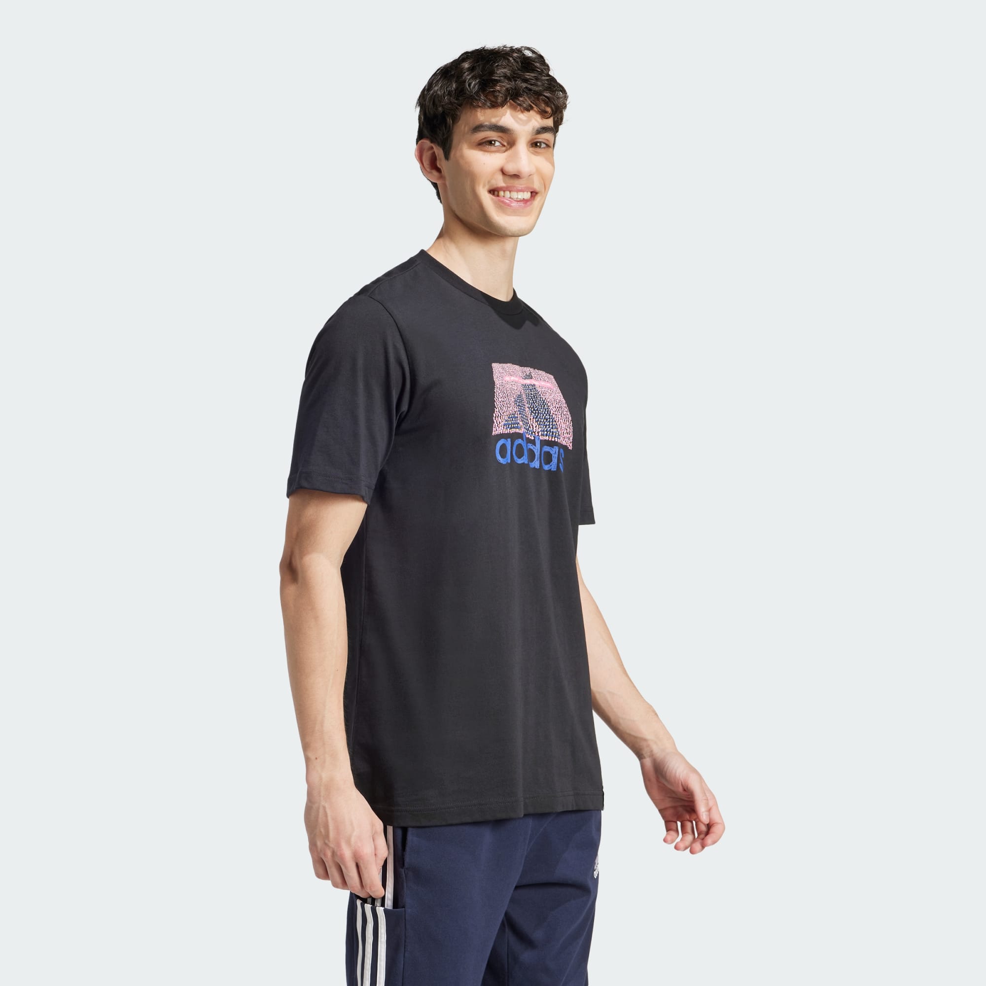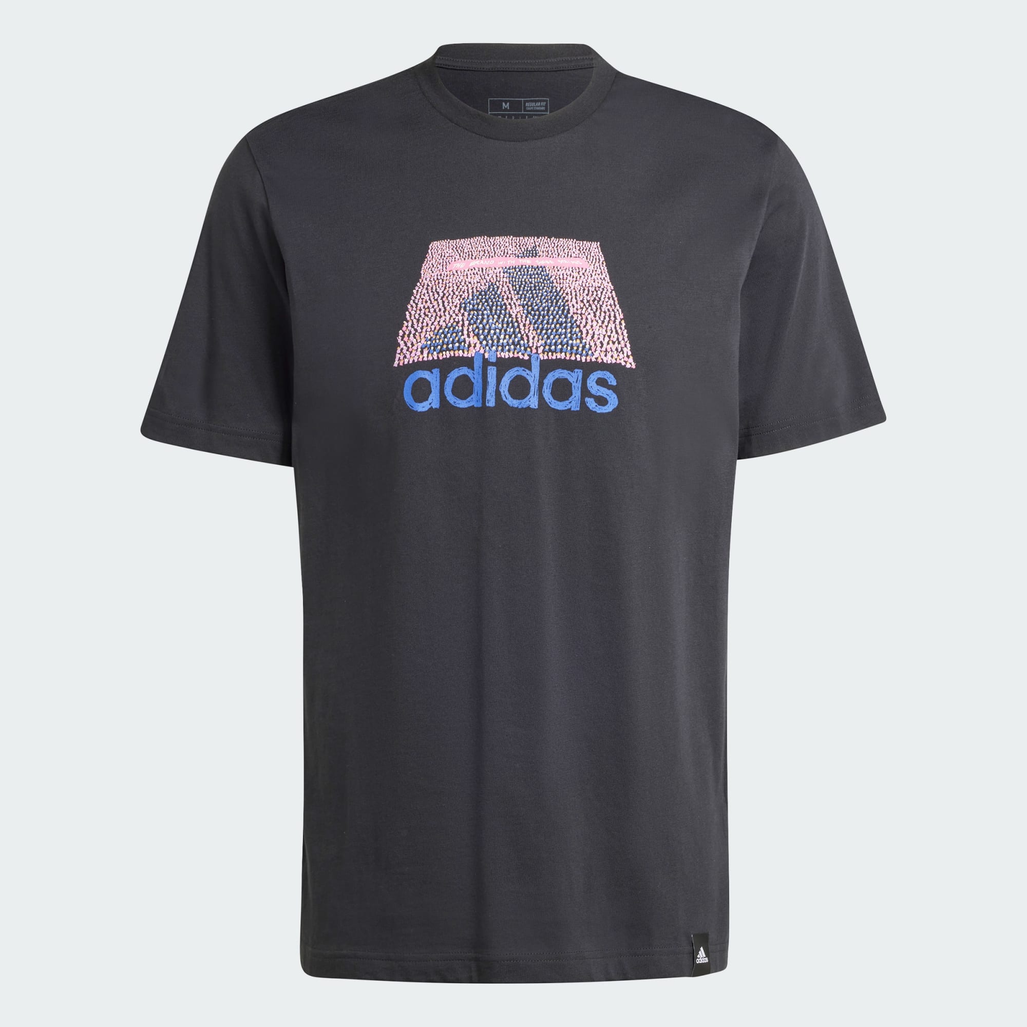 This adidas tee lets you rep your play everywhere you go. It features a rubber screenprint graphic and a stitched-down woven sign-off label. The pure cotton build is perfect paired with joggers for a casual coffee meetup or distressed jeans for a night out.
