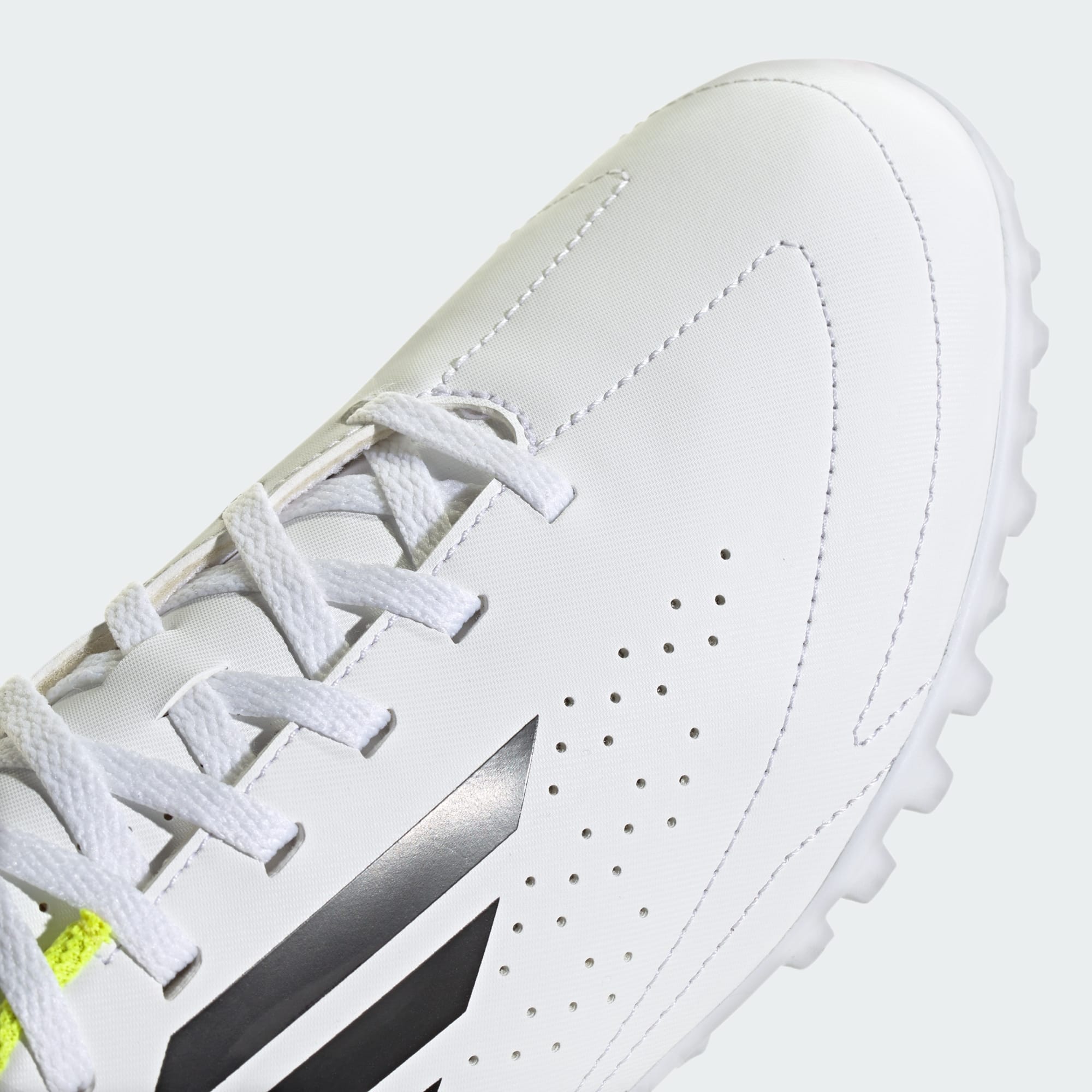 Take the beautiful game seriously in these adidas football boots. Designed for play on artificial turf courts, they have a perforated tongue and soft lining to keep your feet fresh through long matches. Stitching on the synthetic forefoot improves ball control, allowing for pinpoint passes and powerful strikes. An anatomically shaped heel keeps you strapped in for fast-moving play.
