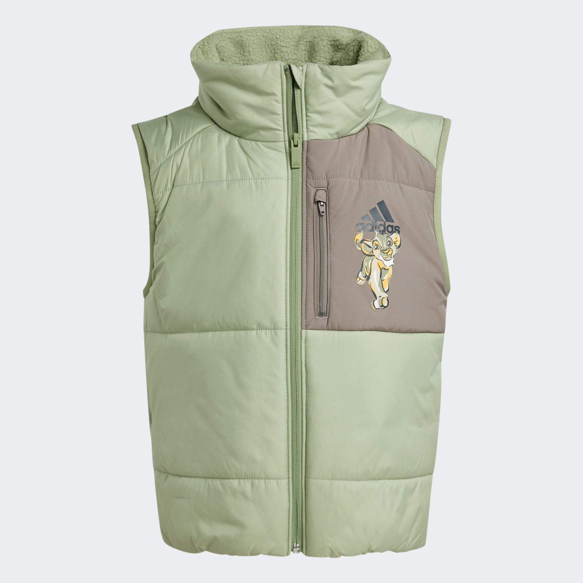 Inspired by Disney's Lion King, this kids' adidas vest keeps young explorers warm as they journey through the Pride Lands and beyond. Featuring the natural tones of the savanna, it teams easily with all types of outfits. A choice of pockets, including a zip pocket at the chest, provide room for any treasures kids collect along the way. This product is made with 100% recycled materials. By reusing materials that have already been created, we help to reduce waste and our reliance on finite resources and reduce the footprint of the products we make.
