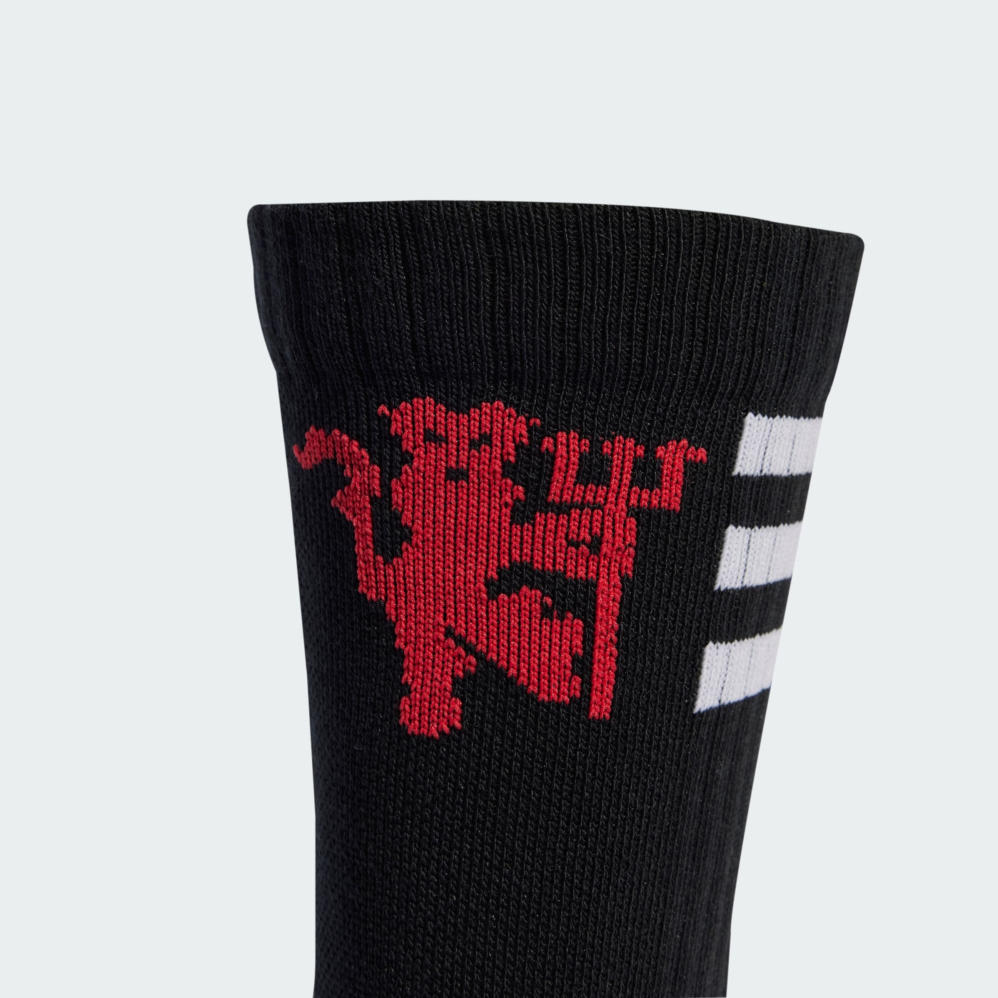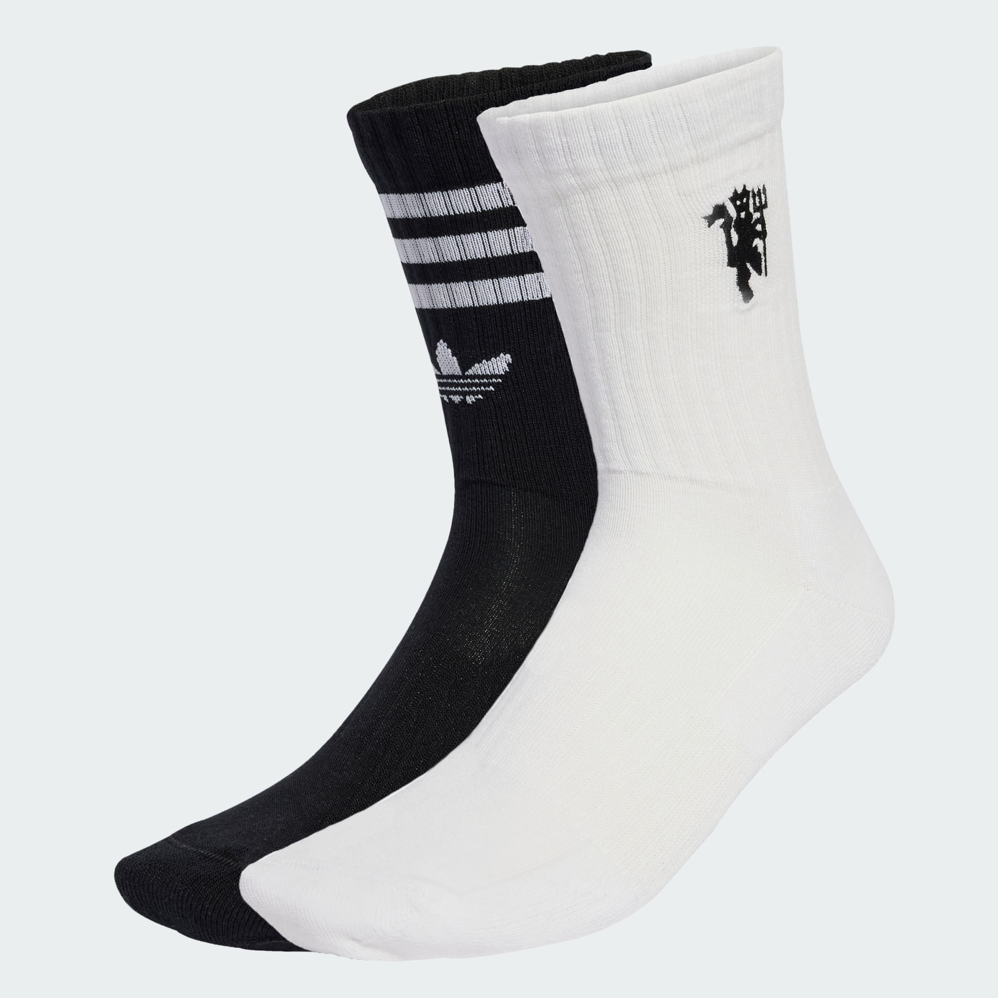 Whether you're watching the big match from the stands or kicking it on the football pitch, show your passion for Manchester United with every step. One pair of these adidas crew-length socks borrows from the club's third kit colours and the other nods to their black home socks. Ribbed cuffs keep them comfortably in place.