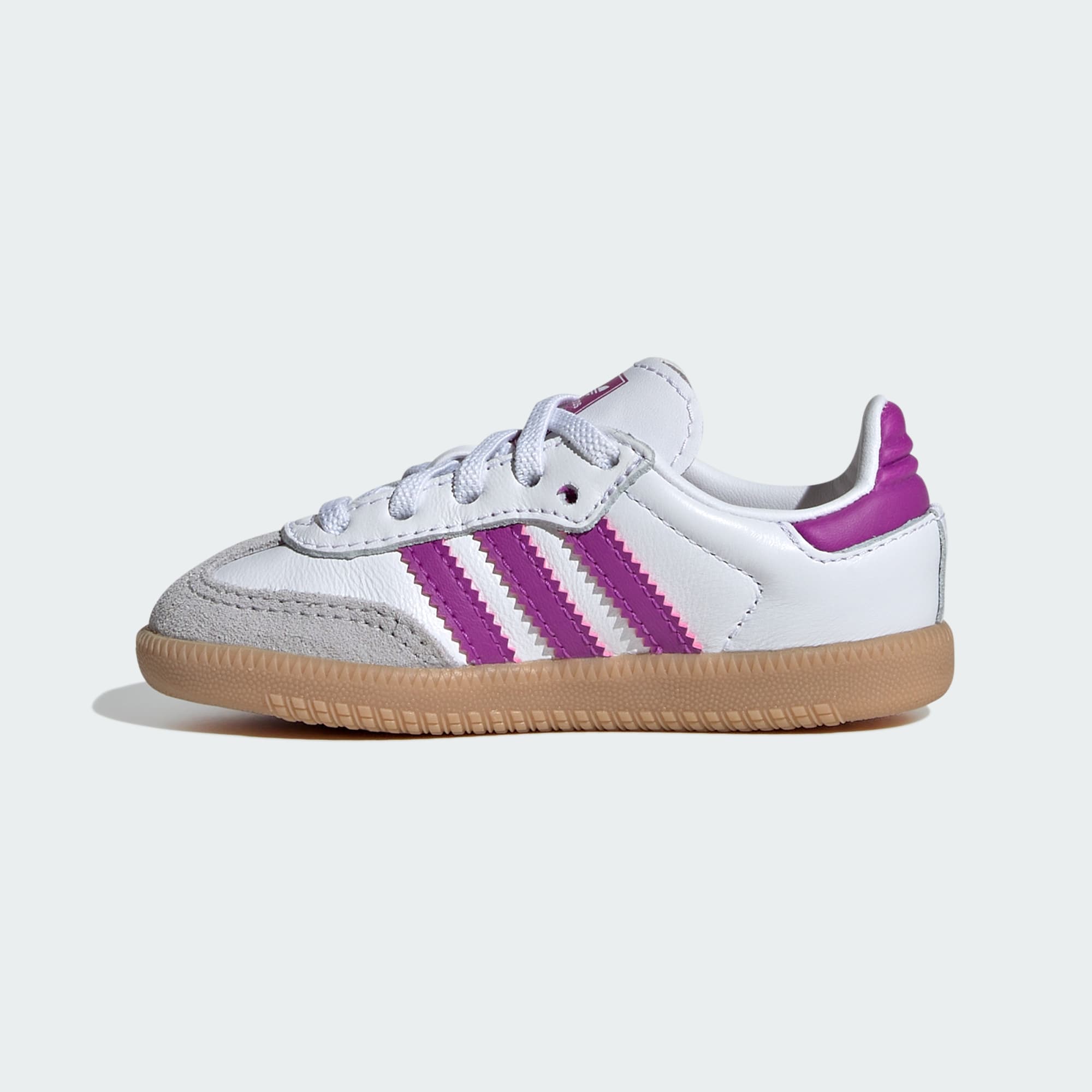 If you time travelled back to the 1960s, you'd find pro soccer players wearing adidas Sambas just like these infants' shoes. Well, almost just like them. Sized down to fit little feet, they feature a soft sockliner that feels comfortable through all-day play. A leather upper, gum rubber sole and 3-Stripes stay classic.