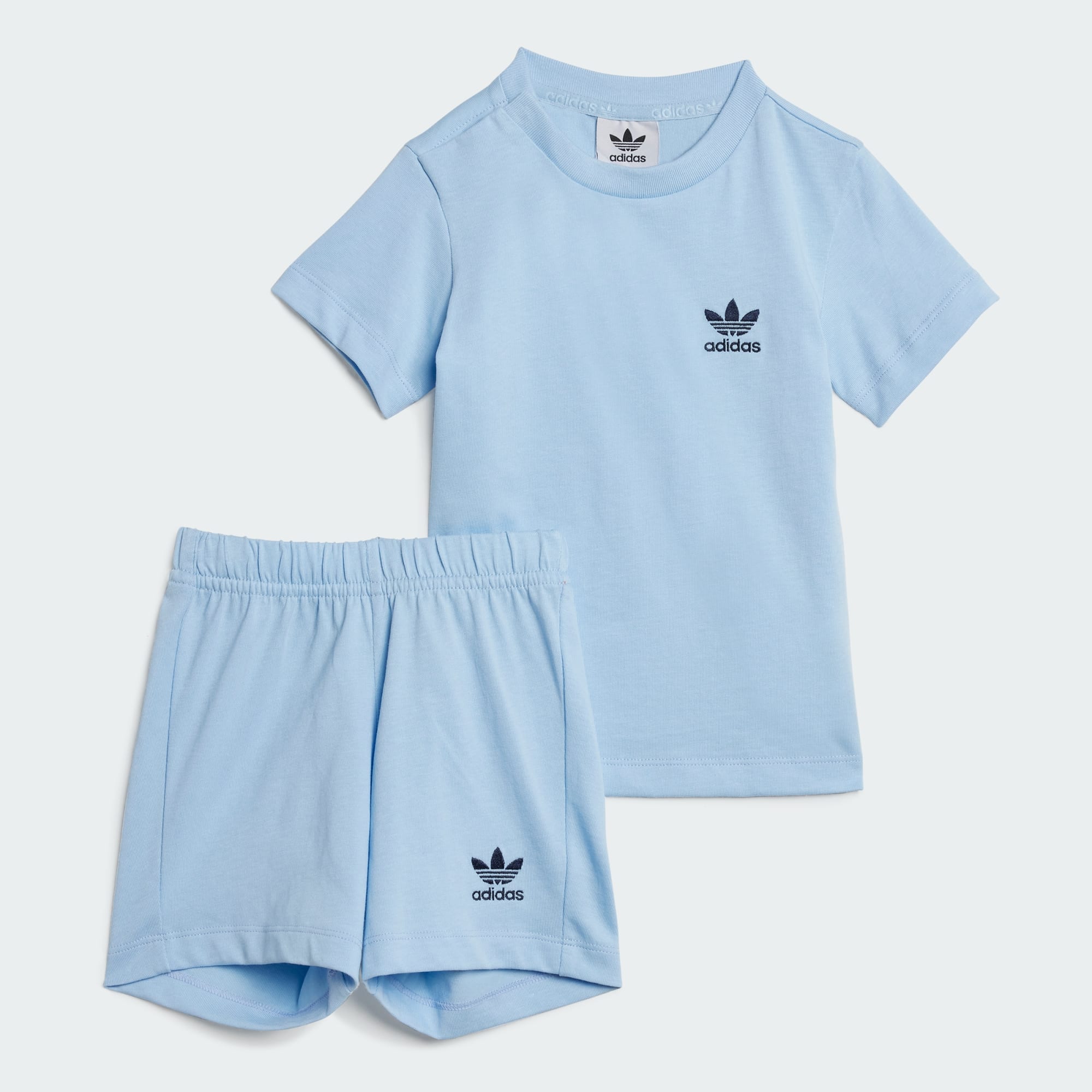 When adventure calls, comfort comes first. This infants' shorts and tee set is built in soft cotton single jersey and has a snap-button closure on the tee for easy on and off. An embroidered Trefoil logo on the chest and legs, plus ribbed details throughout, give your little one classic sport style.