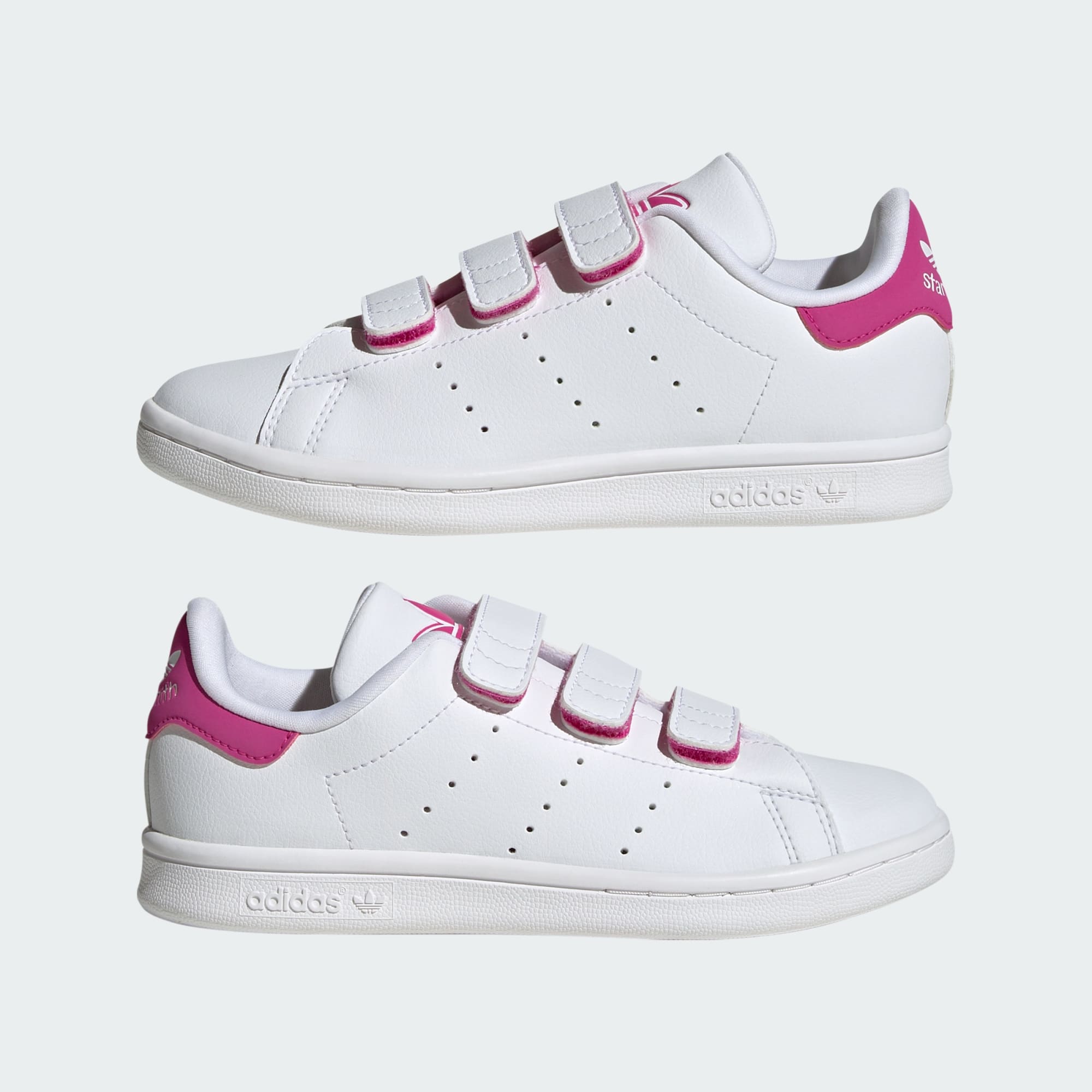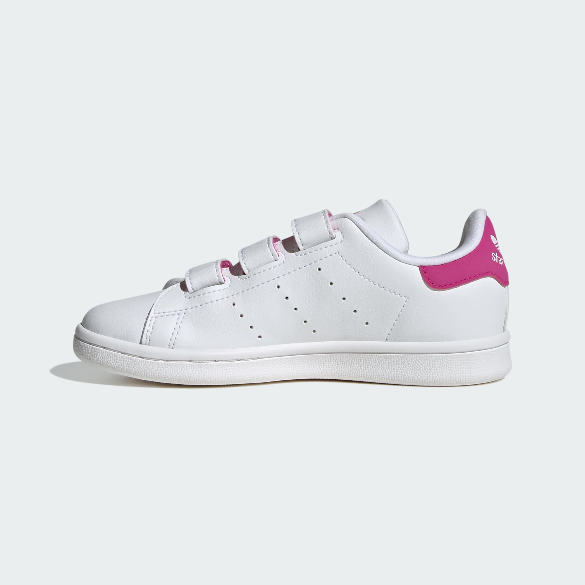 Going strong for more than 50 years, the Stan Smith is a go-to trainer people of all ages. This pair for kids goes long on vintage, with the same clean, simple design and perforated 3-Stripes as the original shoes. Hook-and-loop straps make it easy to get them on and off. This product features at least 20% recycled materials. By reusing materials that have already been created, we help to reduce waste and our reliance on finite resources and reduce the footprint of the products we make.