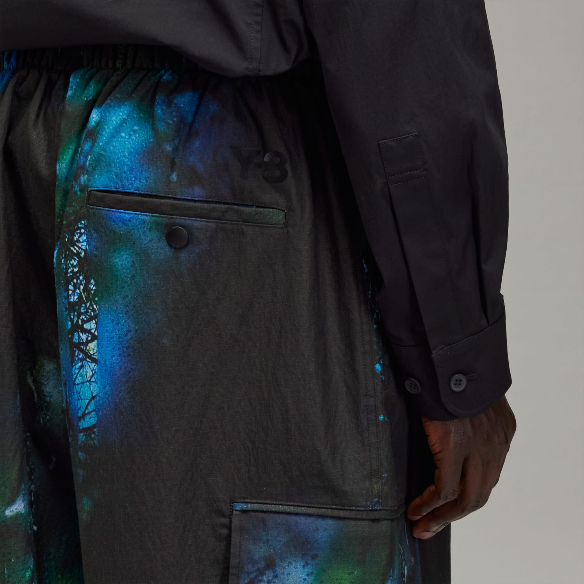 Y-3 cargo pants with a softly-blurred print.