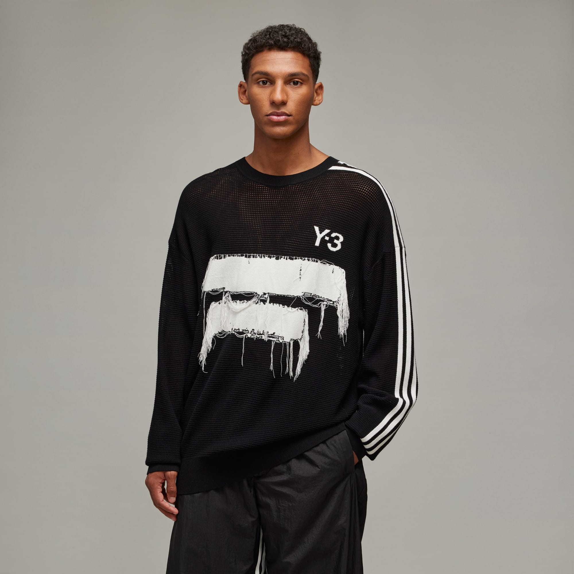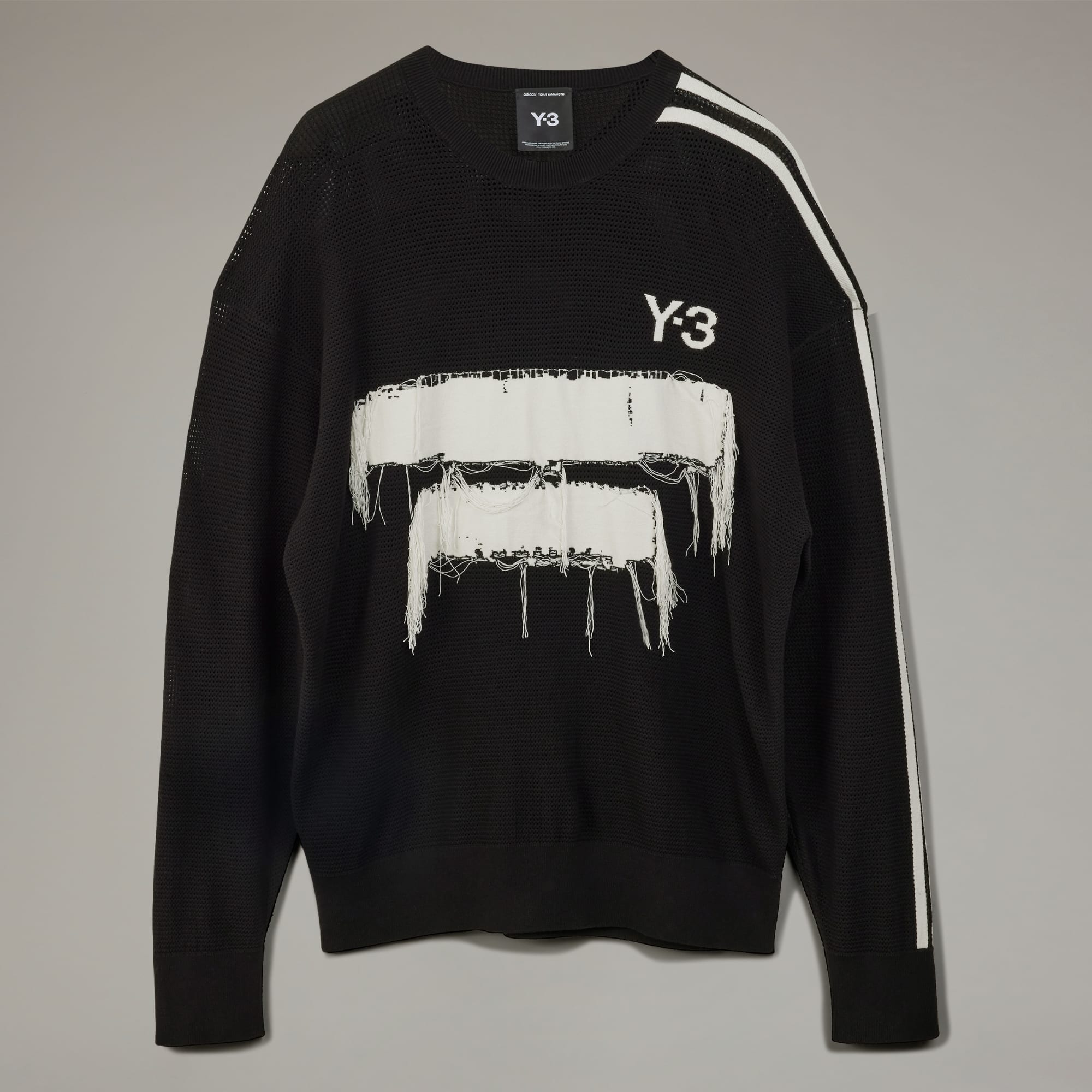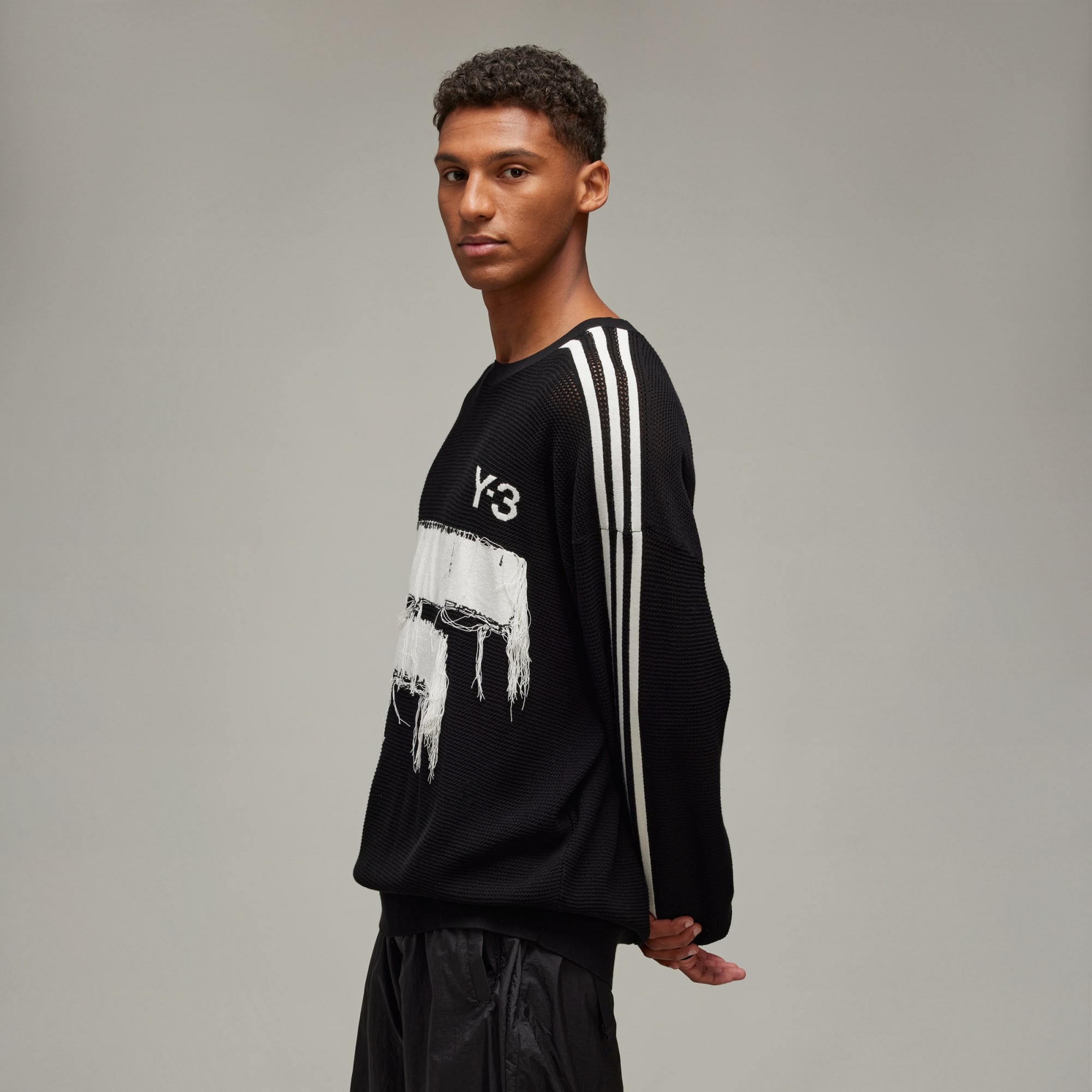 Designed to reference the unfinished and raw design elements of Y-3, this Y-3 Graphic Knit Crew Sweater is built to fit loose for a fashion-forward look. The knit-in engineered Y-3 logo and graphic feature loose threads on the sides for a totally unique finish.