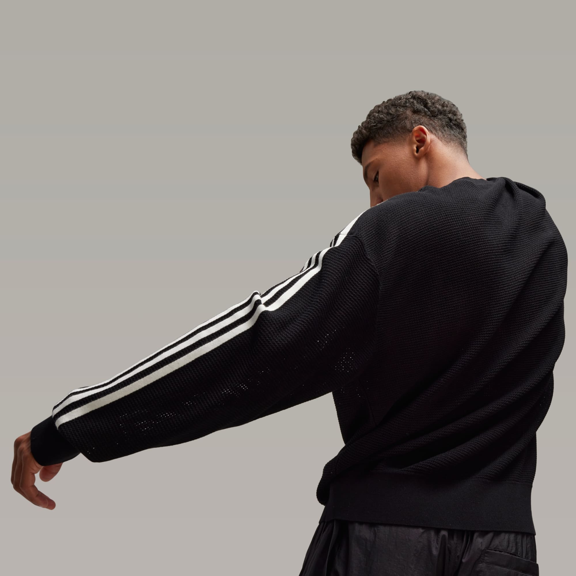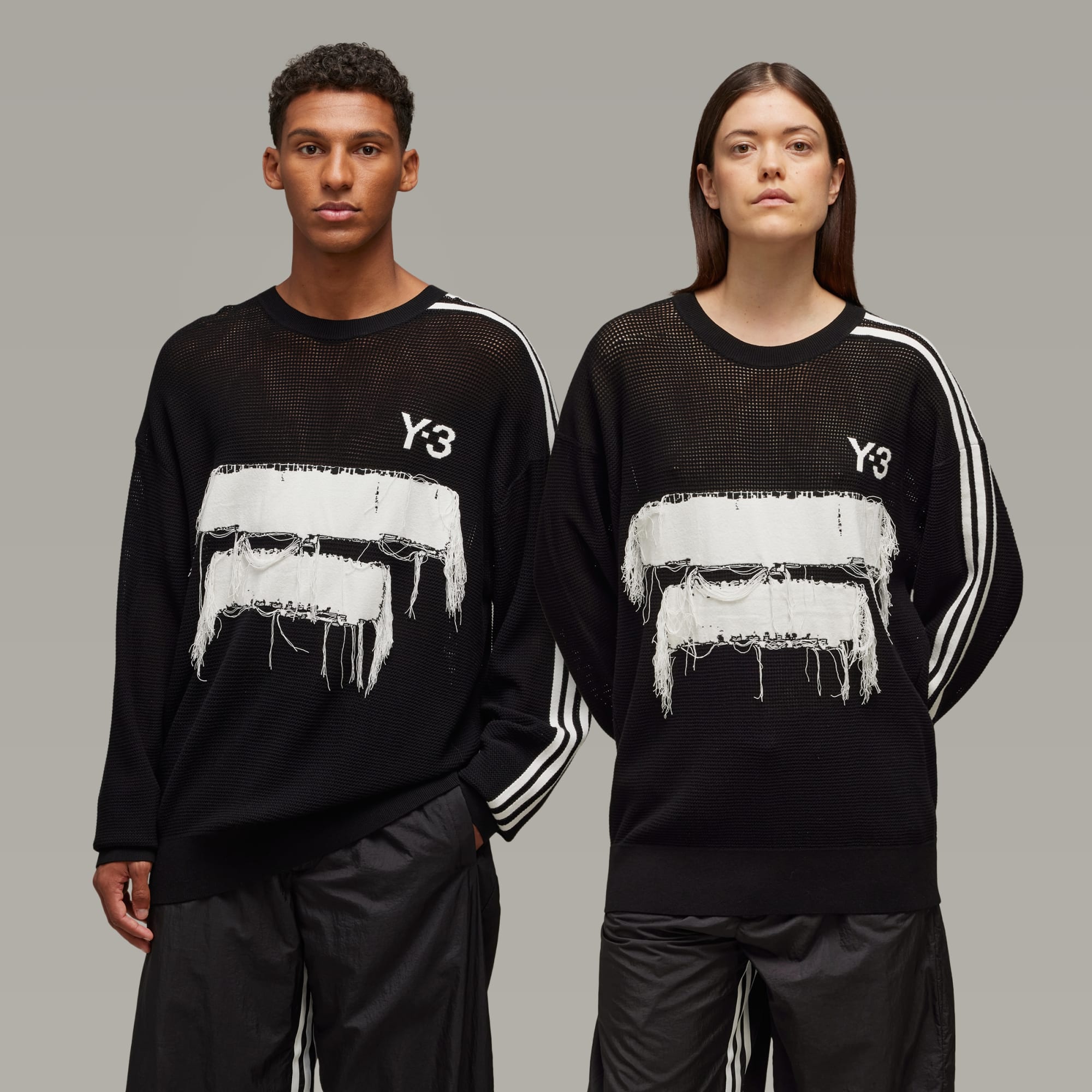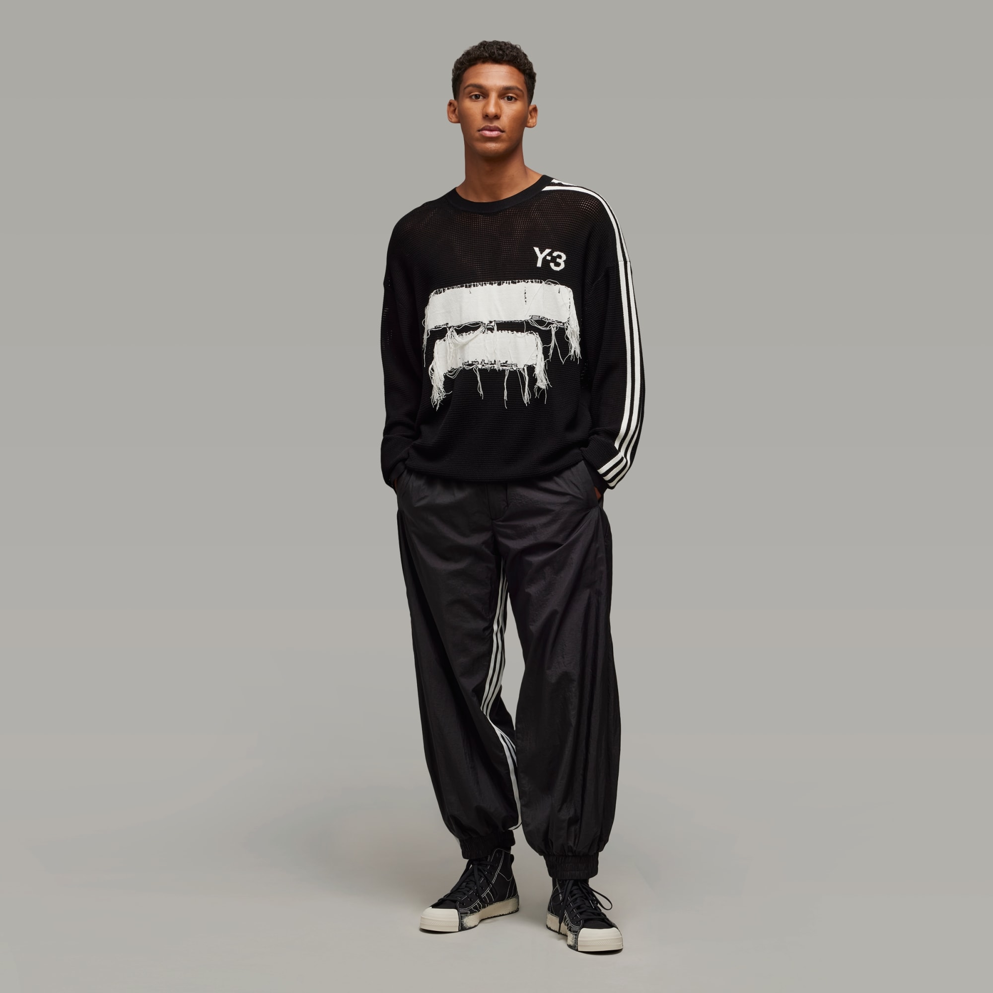 Designed to reference the unfinished and raw design elements of Y-3, this Y-3 Graphic Knit Crew Sweater is built to fit loose for a fashion-forward look. The knit-in engineered Y-3 logo and graphic feature loose threads on the sides for a totally unique finish.