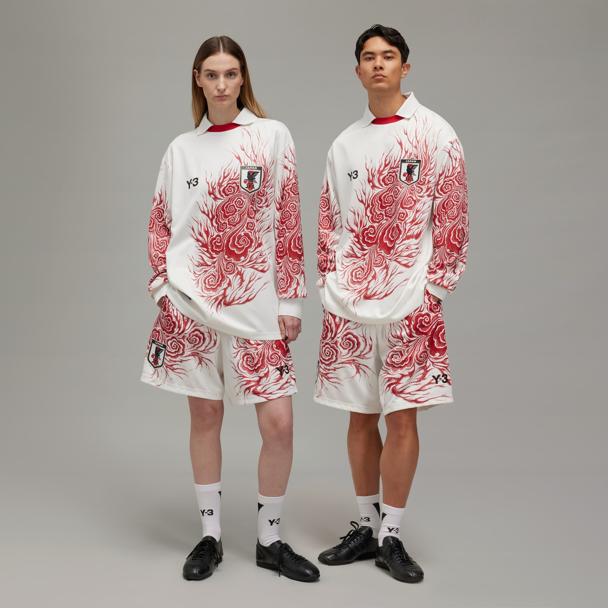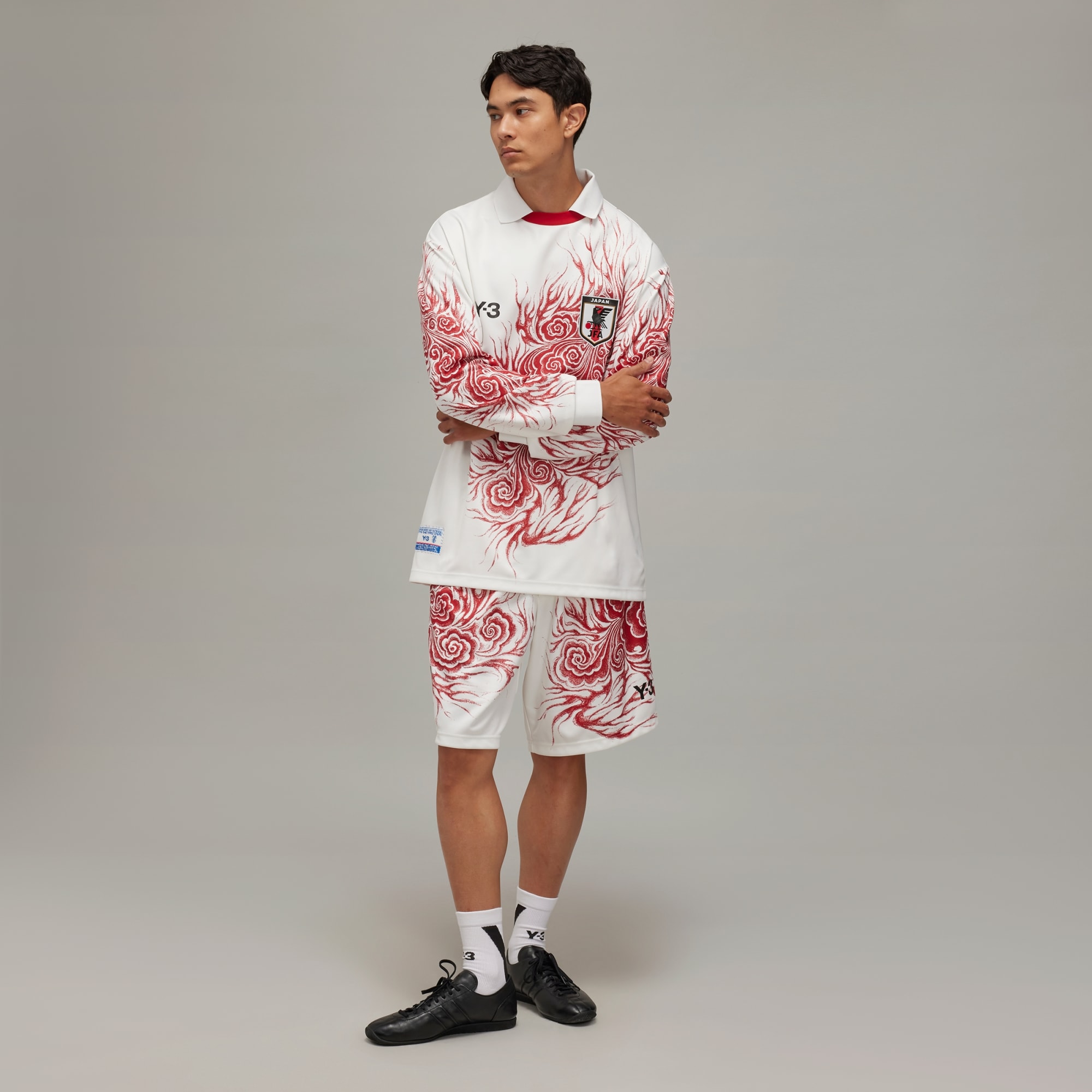 Y-3 and the Japanese Football Association have collaborated to create unique culturewear styles to match the on-pitch uniforms worn by JFA during the world's most iconic athletic event. The Y-3 JFA Graphic Shorts give a direct nod to a vintage JFA kit with the sublimated flame graphics. The shorts feature a JFA crest heat transfer, a Y-3 logo and woven label placements taken from traditional player kit guidelines. This product is made with 100% recycled materials. By reusing materials that have already been created, we help to reduce waste and our reliance on finite resources and reduce the footprint of the products we make.