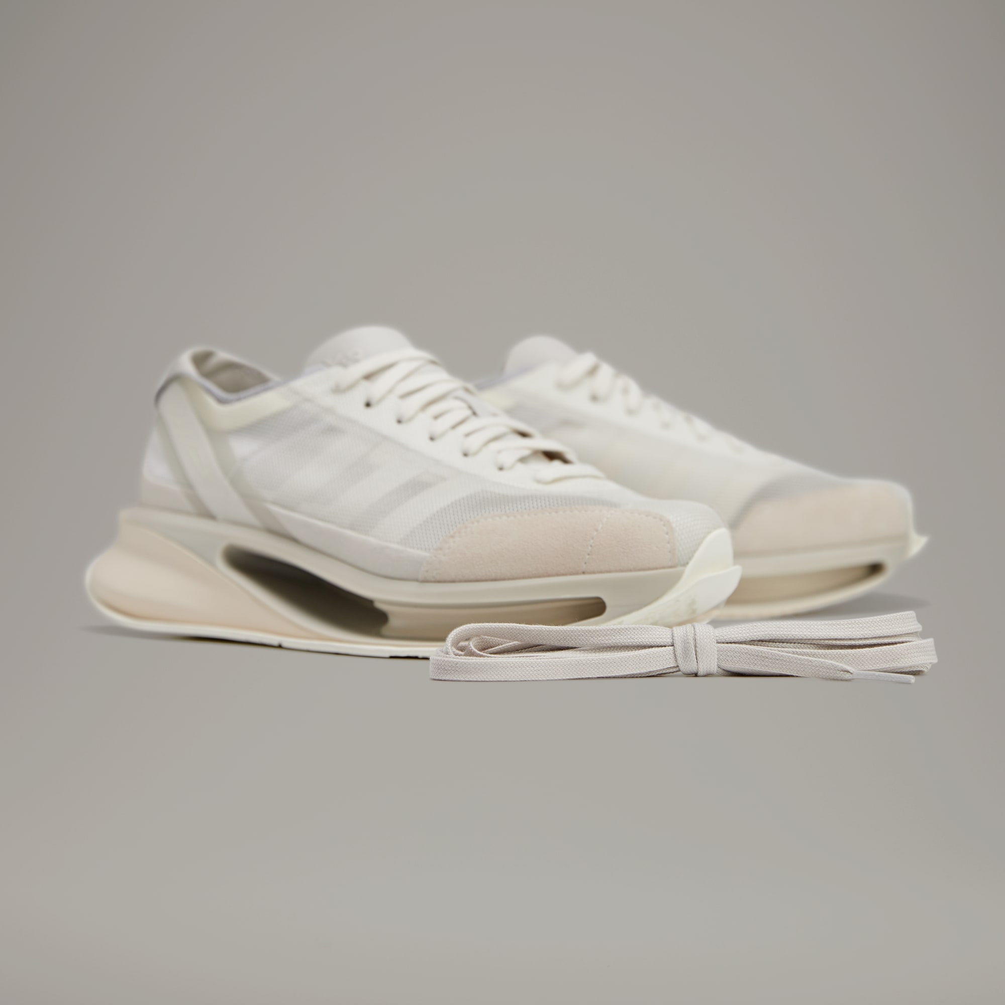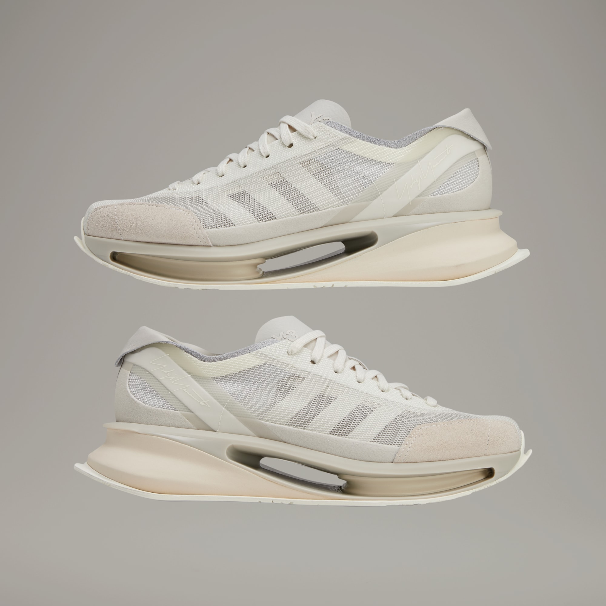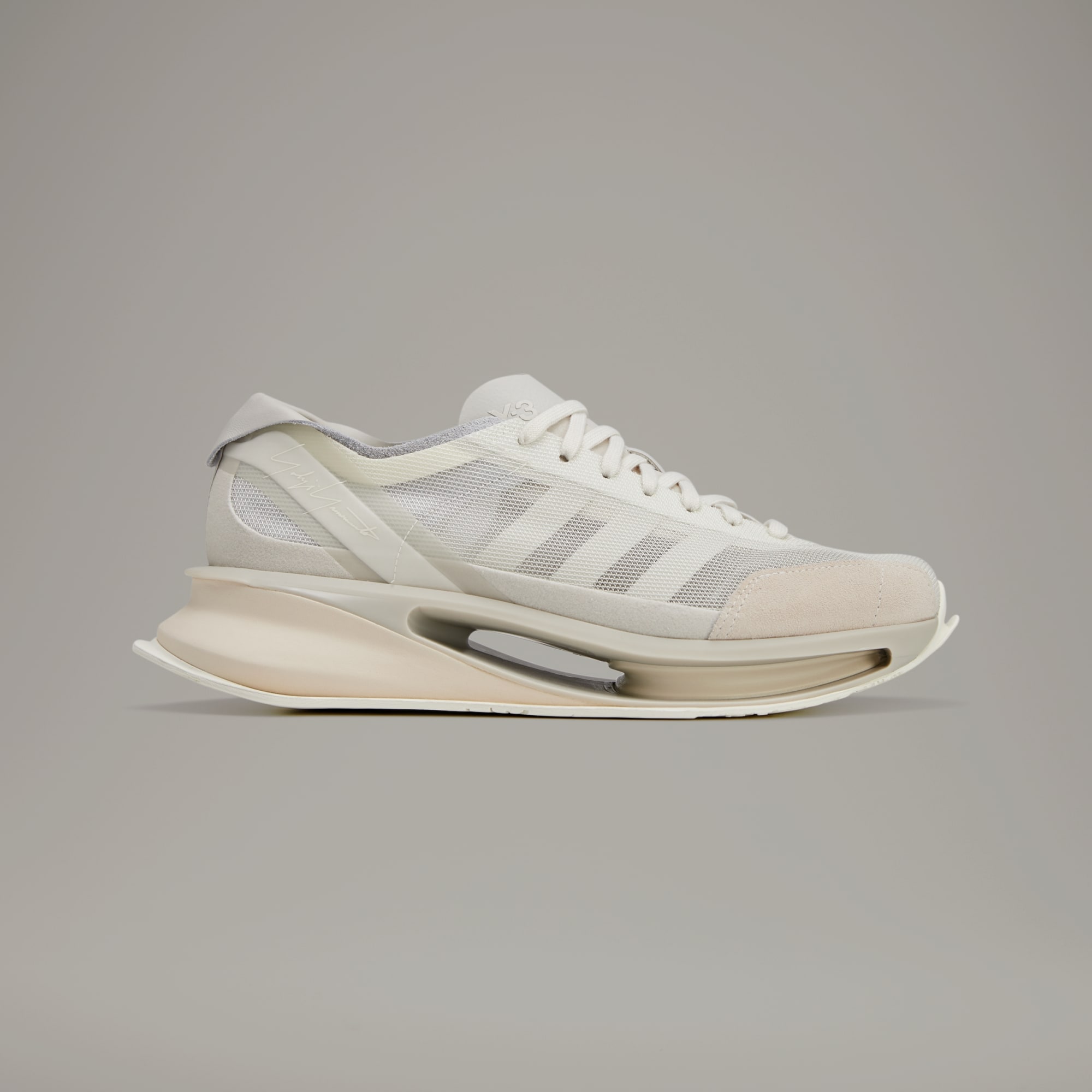 With the S-Gendo Run, Y-3 introduces a daring new silhouette built by merging advanced midsole technologies of the latest adidas running models with the aesthetic of heritage adidas trainers. The result is futuristic, but the comfort keeps you grounded in the present — with both innovative Lightstrike technology and a Pebax® plate (incorporating a poured-in EVA element) to take comfortability to the highest levels. The fully hollow plate plays with the idea of negative space and elevation — a Japanese concept in which empty space creates deeper meaning and shape. Breathable mesh, suede and leather come together on the upper. A Y-3 logo on the tongue and Yohji's signature on the heel provide the signoff.