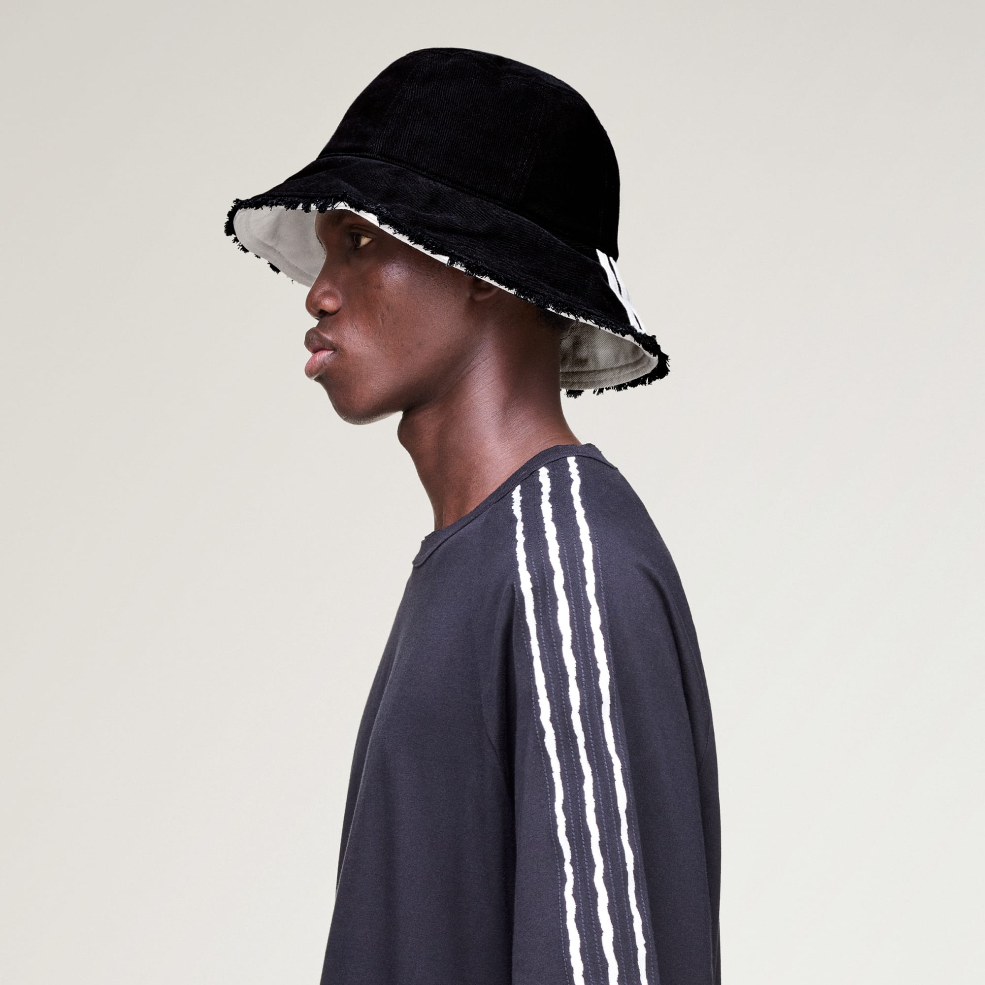 The Y-3 Stripes Bucket Hat is inspired by adidas’ history in sportswear and defined by Yohji Yamamoto’s eye for unconventional fashion. With a durable twill construction, this hat embodies the rebellious spirit and progressive design ethos of Y-3. The 360-degree 3-Stripes execution adds a distinctive touch, with tonal stripes across the main body and contrasted stripes on the brim. The two-layered visor introduces dimension, featuring distressed edges on the top layer and a sharply contrasted underlayer for an unexpected finish. An embroidered Y-3 logo at the back completes the look, helping you stand out with style and confidence.